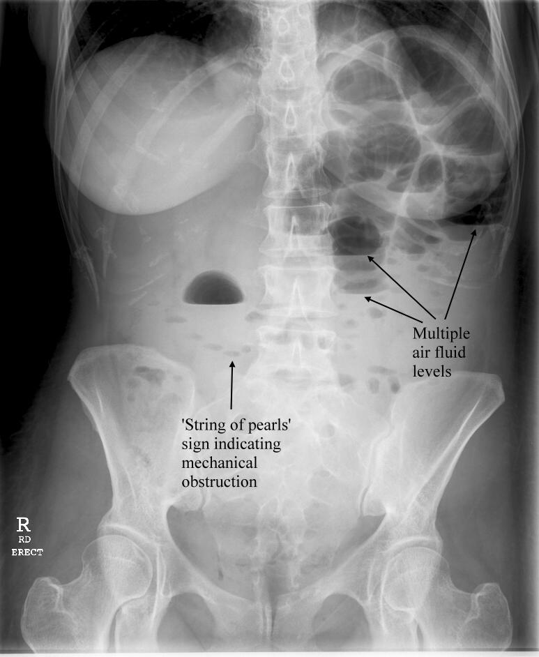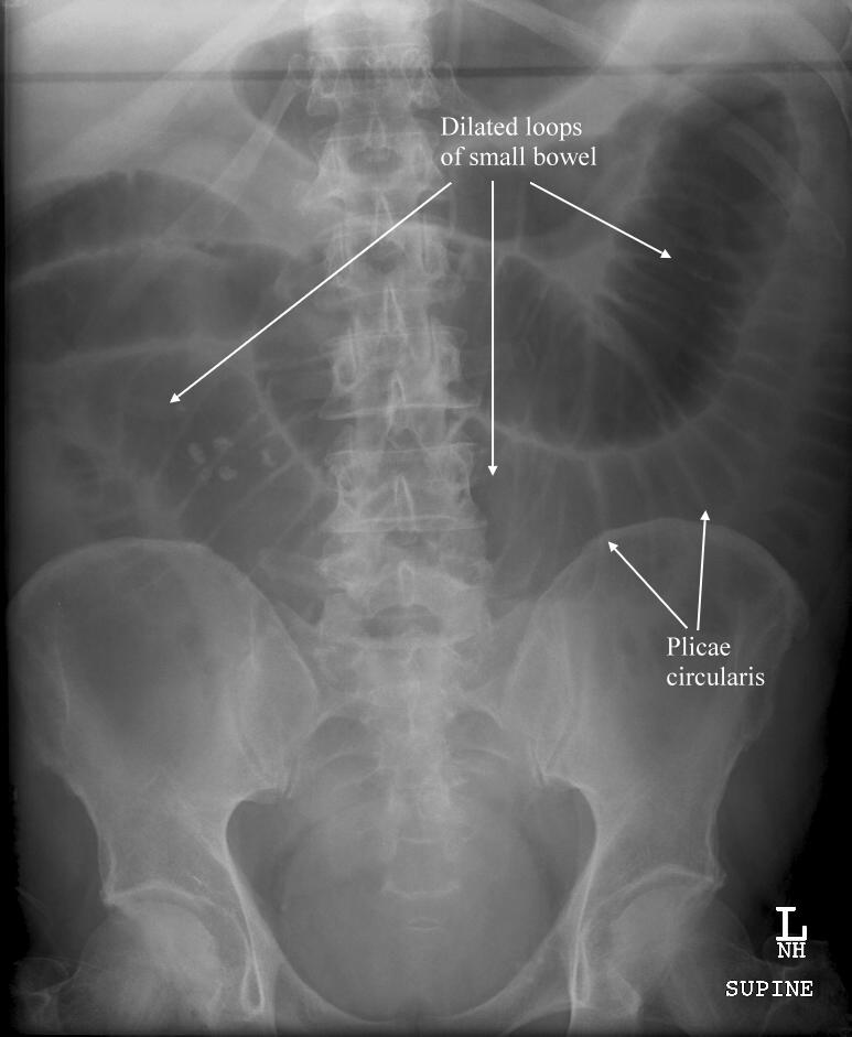 Mechanical small bowel obstruction related to abdominal masses, recommend additional follow-up or biopsy.